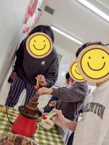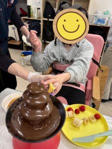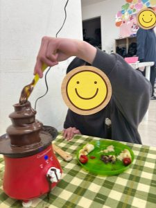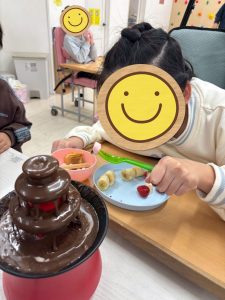 みんなチョコレートをつけて、食べて、チョコレートファウンテンパーティを楽しんでいました😍