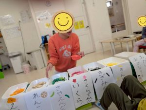 「れ、ん、こ、ん」「に、ん、じ、ん」と、ひとつずつ平仮名を読んでいくお友だちもいました👍