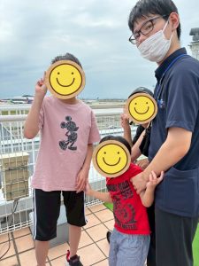 「向こうから飛行機が来たよ!」「どこに行くのかな?」と子どもたちは大きな空にずっと目を向けていました✨