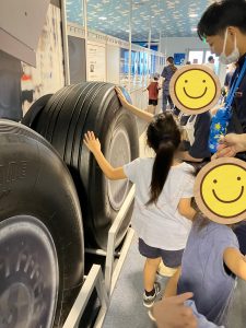 飛行機のタイヤは、みんなの背の高さよりも大きくてびっくりです😳‼