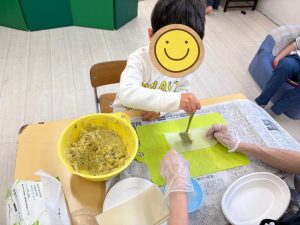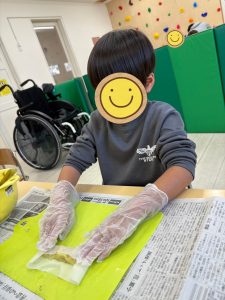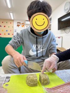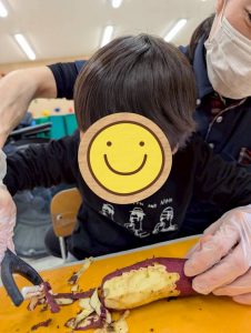 「どんなおやつを作ろうかな?」とスタッフが聞くと、「芋ようかんはどうですか❓」と言ってくれたお友だちがいたので、「それいいね‼」と言うことでメニューが決定しました😊